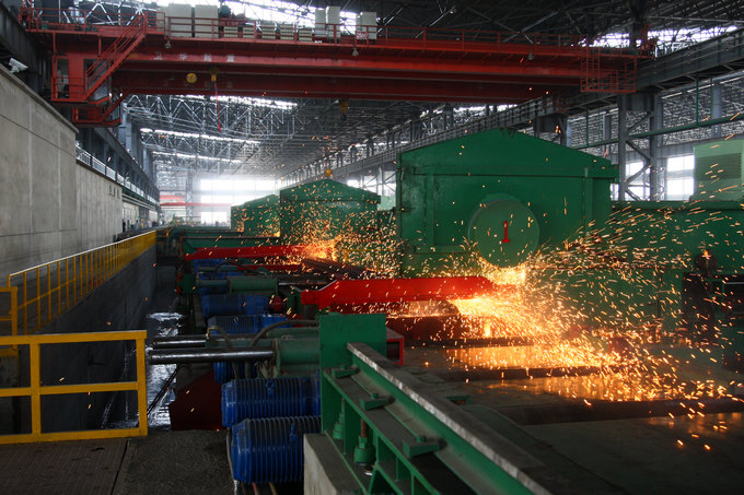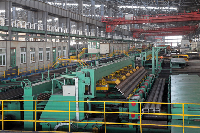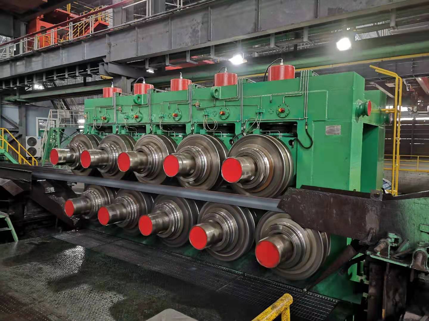 連鑄—連軋短流程生產(chǎn)線具有世界先進(jìn)水平,主要裝備有: 雙蓄熱步進(jìn)式加熱爐、1000兩輥開(kāi)坯軋機(jī)、十一架高剛度短應(yīng)力線連軋機(jī)、155m步進(jìn)式冷床、900十輥矯直機(jī)、1100十輥矯直機(jī)、移動(dòng)式冷鋸、型鋼自動(dòng)包裝機(jī)等,采用了熱裝熱送、高壓水除鱗、控制軋制、控制冷卻、長(zhǎng)尺矯直、冷鋸定尺、自動(dòng)包裝、微機(jī)自動(dòng)化控制等世界領(lǐng)先的工藝和技術(shù)。