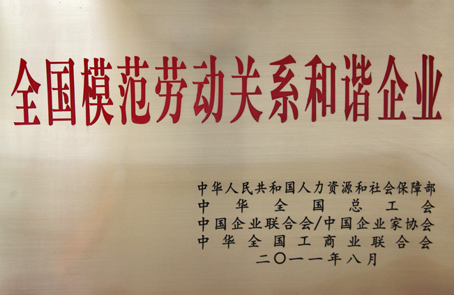 公司榮獲“全國模范勞動關(guān)系和諧企業(yè)”稱號
