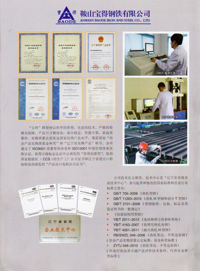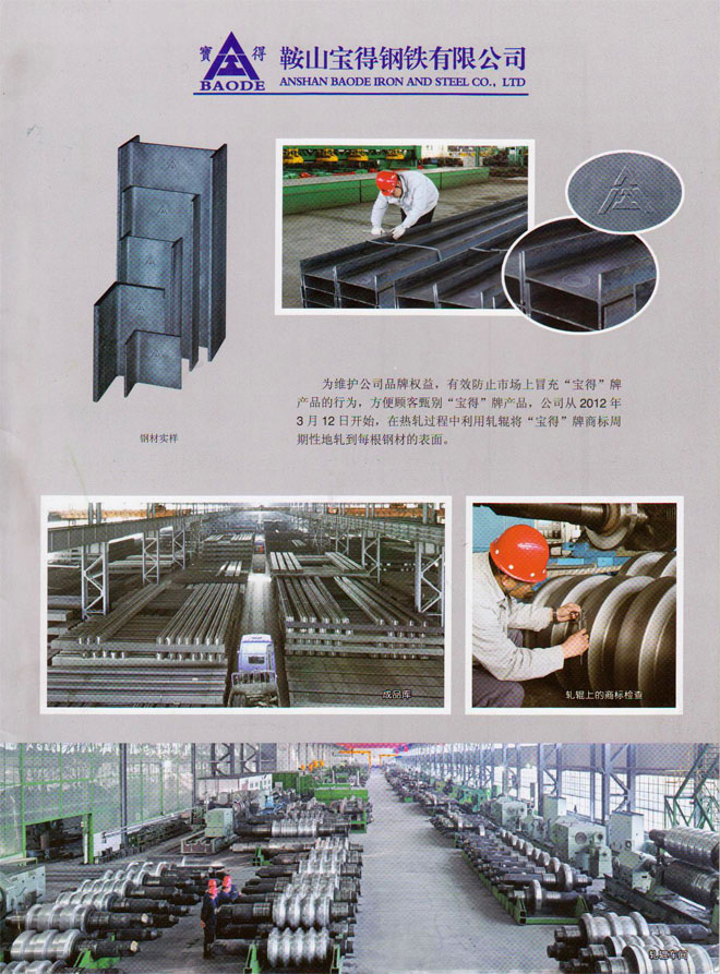 12月19日,公司新版產(chǎn)品樣本制作完成。該樣本全面介紹公司120萬噸型鋼、H型鋼生產(chǎn)線擁有國際先進(jìn)的工藝、設(shè)備情況,以及公司實(shí)施名牌戰(zhàn)略生產(chǎn)的高品質(zhì)型鋼產(chǎn)品。該樣本2開4頁,印刷精良,印刷3萬冊(cè),已開始面向客戶發(fā)放。