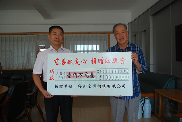 9月1日,《中華人民共和國慈善法》正式頒布實(shí)施的當(dāng)天下午,鞍山寶得鋼鐵公司的一位代表風(fēng)塵仆仆來到市慈善總會,捐出專項(xiàng)善款100萬元,并轉(zhuǎn)達(dá)了寶得公司董事長張永全的話:“我要兌現(xiàn)承諾,只要企業(yè)經(jīng)濟(jì)效益好了,只要我們還有這個能力,就要繼續(xù)獻(xiàn)愛心,就要幫助那些有困難的人。”