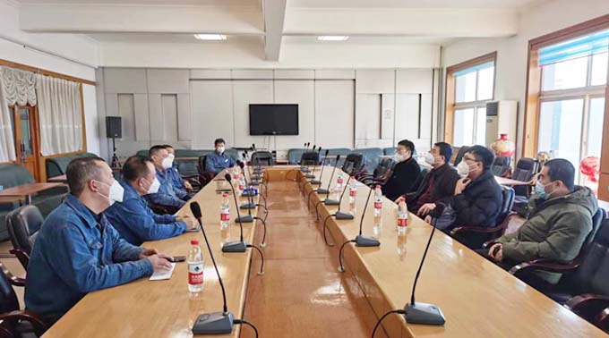 2023年1月9日,鞍山市經(jīng)濟開發(fā)區(qū)市場監(jiān)督管理局新任局長姚繼文(右三)、特種設備主管副局長郎斌初(右四)及業(yè)務主管人員,到寶得公司進行調(diào)研、走訪。公司領導和業(yè)務主管部門分別介紹了公司安全生產(chǎn)和特種設備管理工作的開展情況。姚繼文局長對寶得公司安全生產(chǎn)和特種 設備管理工作取得的成績給予了肯定和贊揚,并對開展好新一年的工作提出了要求。公司副總經(jīng)理陳旭東(左三)、路士洪(左二)等領導全程陪同。